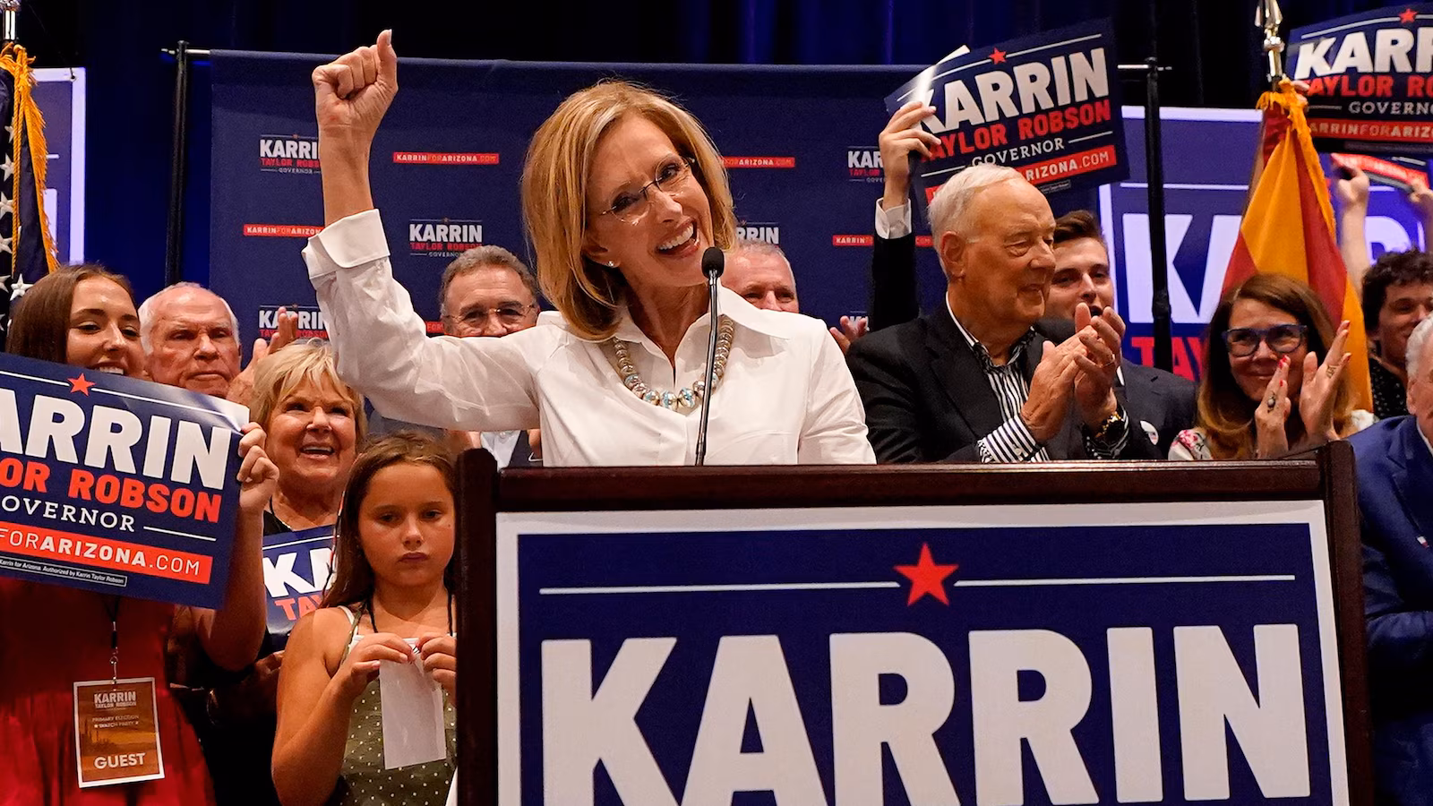 Taylor Robson generally had been the pick of business-aligned conservatives, though she leaned hard on Trump’s backing this go-around. A #MAGA sits in her X profile and among the top issues cited in her “Arizona First” agenda were ending “woke indoctrination” in schools and keeping the border secure.