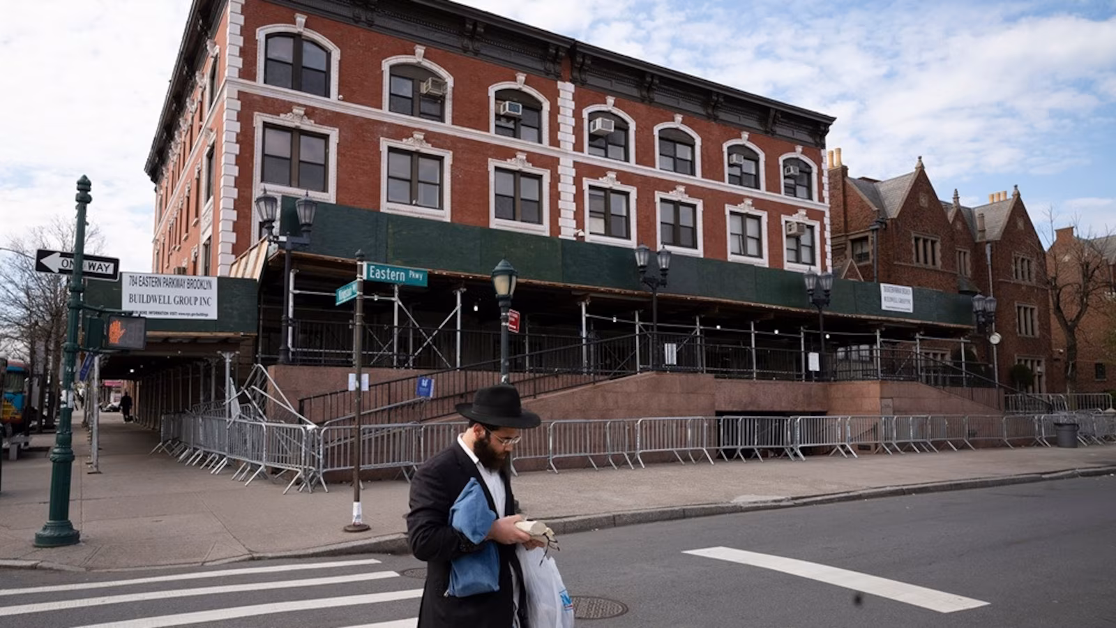 A man passes the Chabad-Lubavitch World Headquarters in the Crown Heights neighborhood of Brooklyn.