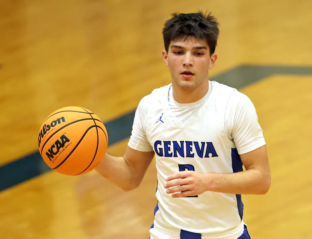 Jensen made six 3-pointers overall and finished with 18 points for Geneva (8-0, 3-0). Nathan Palmer led all scorers with 22 points and hit the winning free throw with seven seconds left.