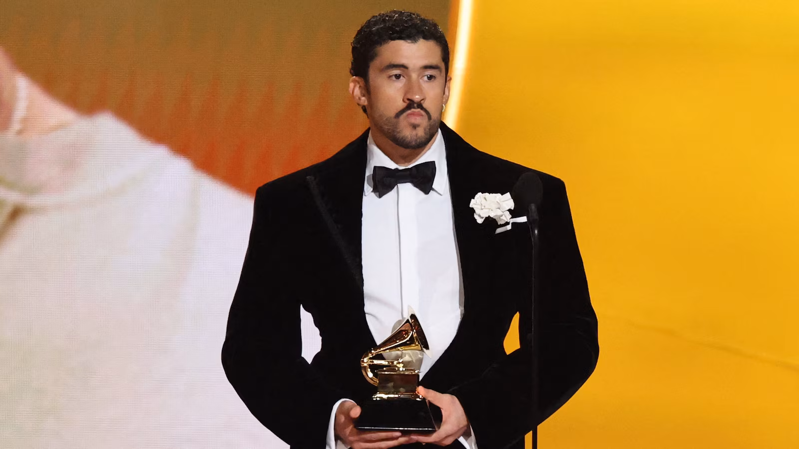 During his album of the year acceptance speech in Spanish, Bad Bunny dedicated the award “to all the people that had to leave their homeland, their country, to follow their dreams.”
