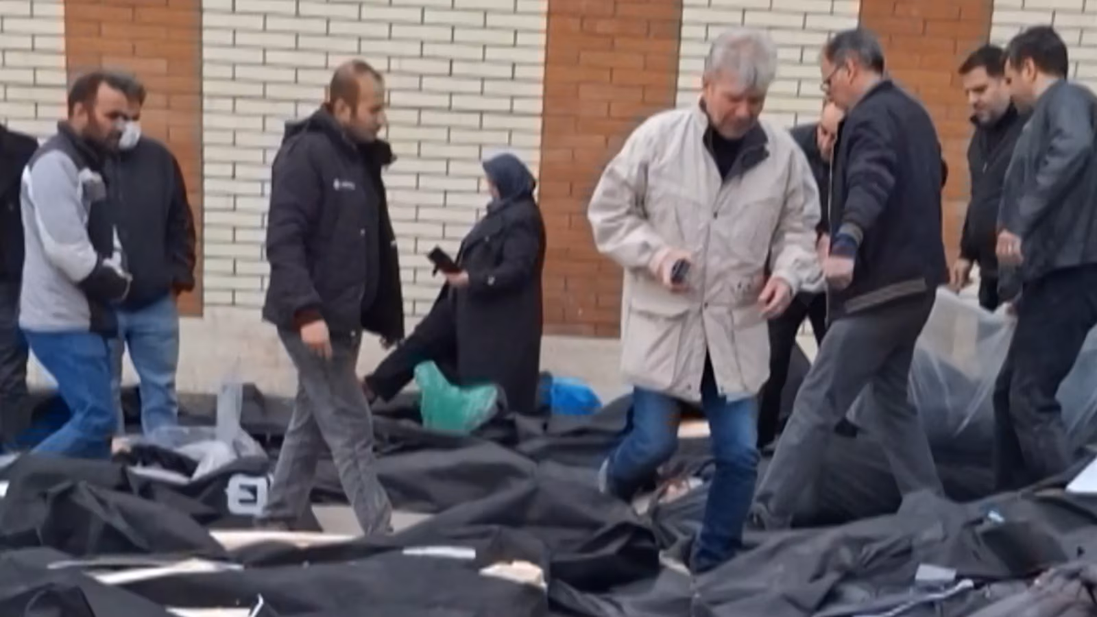 This video grab taken on Jan. 14, 2026 from UGC images posted on social media on Jan. 13, 2026, shows dozens of bodies lying on the ground at the Tehran Province Forensic Diagnostic and Laboratory Centre in Kahrizak, Iran.