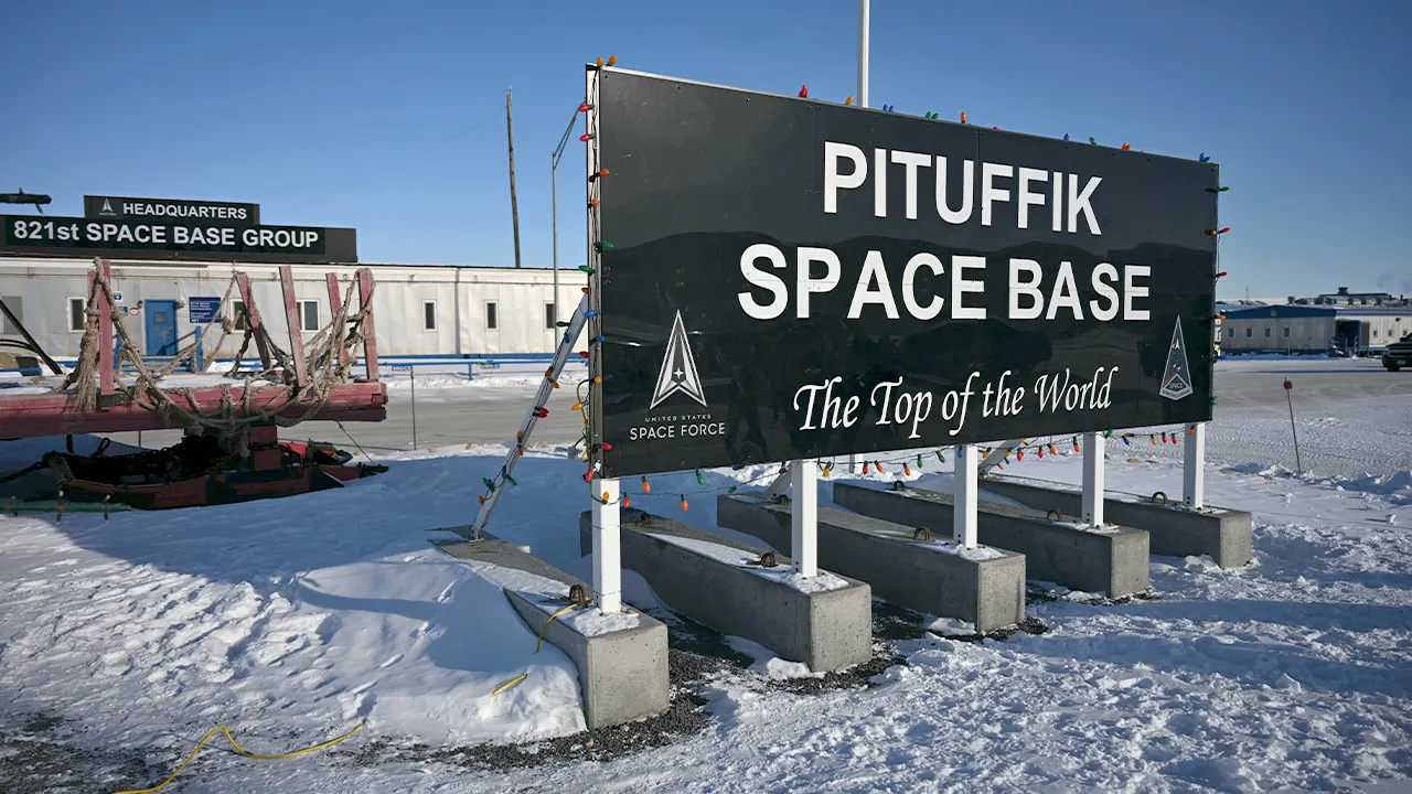 A view shows a sign at the U.S. military’s Pituffik Space Base in Greenland on March 28, 2025. (Jim Watson/Pool via Reuters)