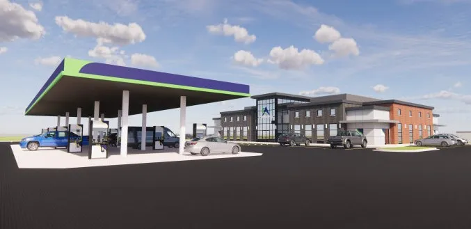 In front of the 11,000-square-foot building, he said there will be 20 gas fueling stations. Behind the building will be five diesel pumps for large semi-trailer trucks carrying big loads.