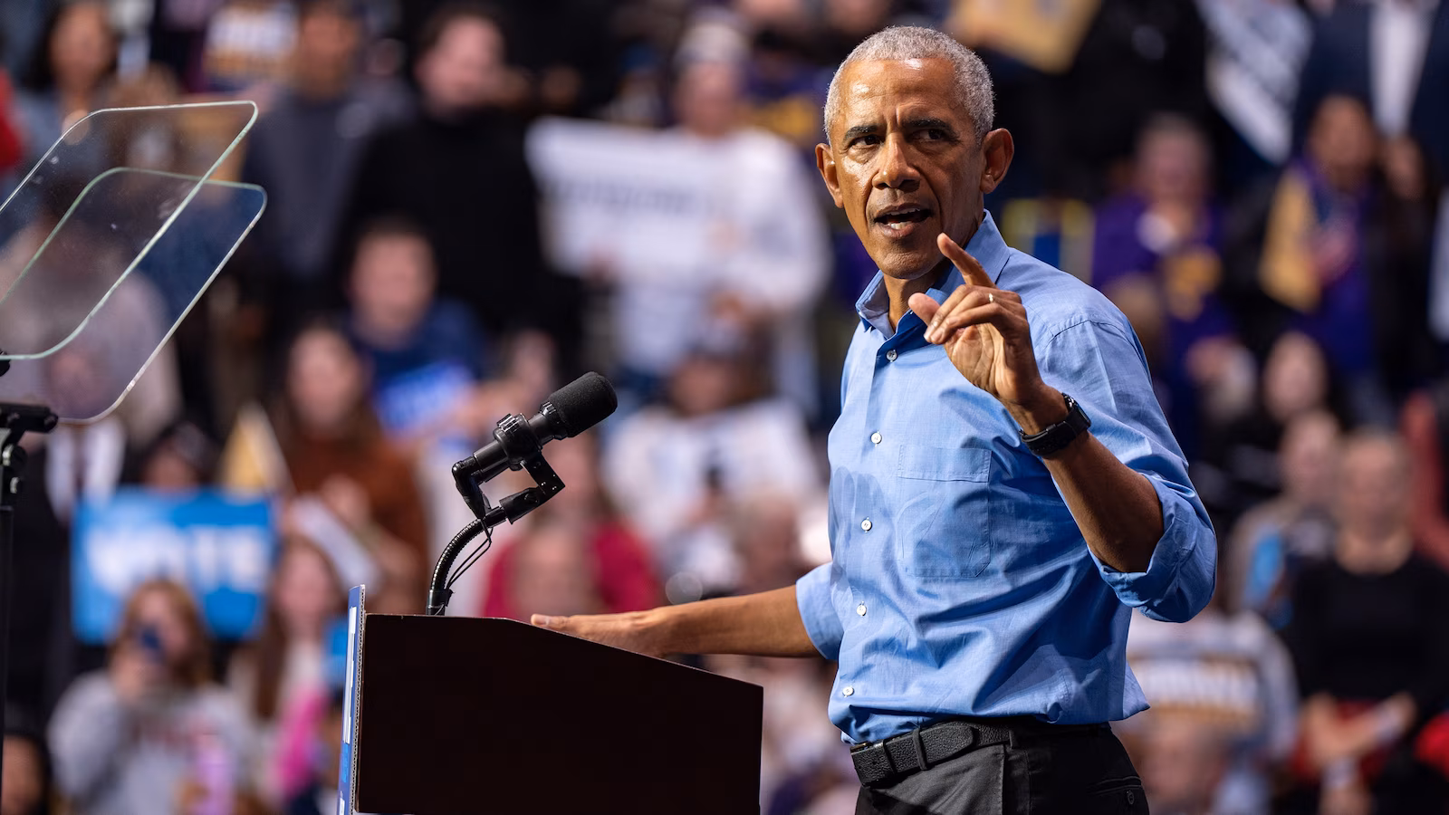 Former President Barack Obama speaks at a rally for New Jersey Democratic gubernatorial candidate Mikie Sherrill, Saturday, Nov. 1, 2025, in Newark, N.J.