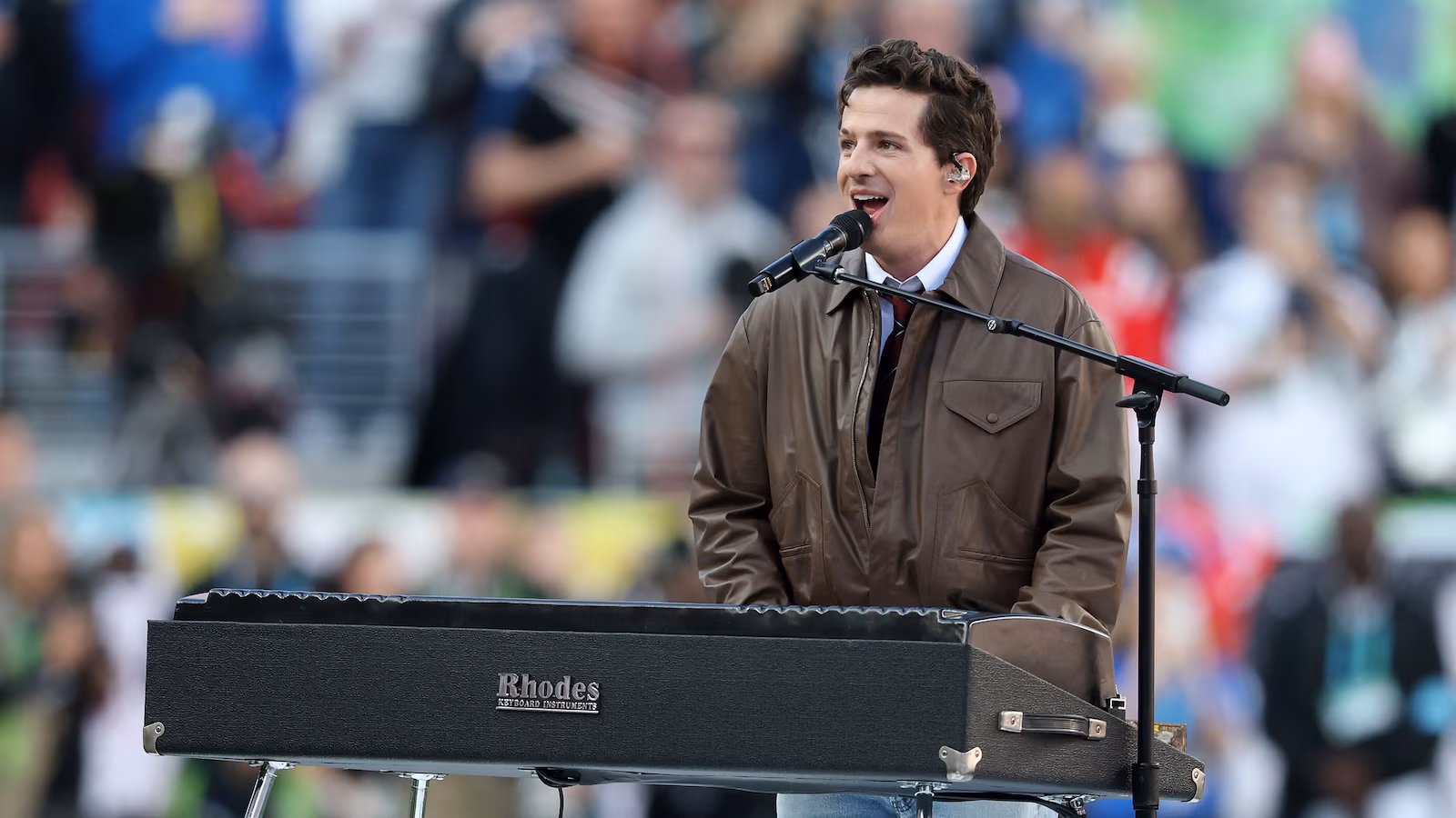 Charlie Puth performs the national anthem during pregame activities before Super Bowl 60 in Santa Clara, Calif., February 8, 2026.