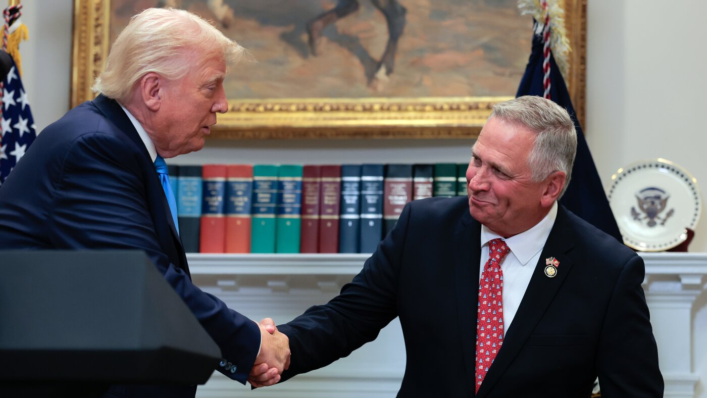 The U.S. Supreme Court has ruled that Illinois Republican U.S. Rep. Mike Bost — seen here with President Trump — has the legal standing to challenge a state law about mail ballots.