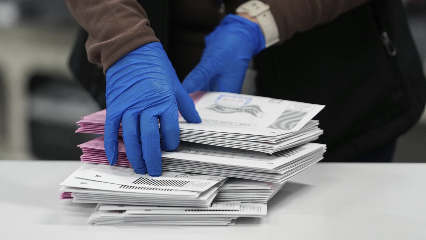 An election worker sorts mail-in ballots in Reno, Nev., on Nov. 5, 2024.