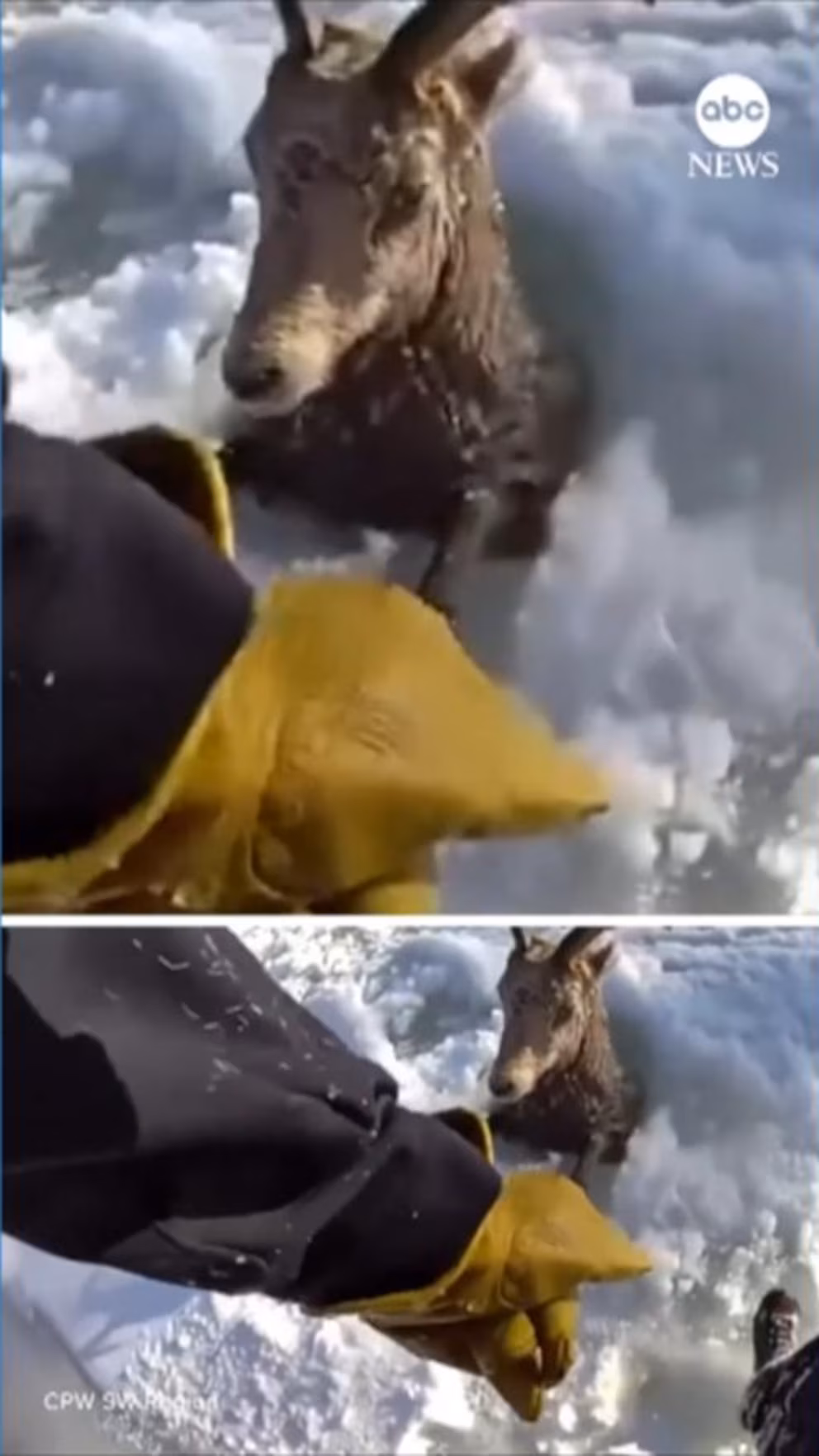 A bighorn sheep was released back into the wild on Tuesday, a day after being rescued from an icy river by wildlife managers in Colorado.