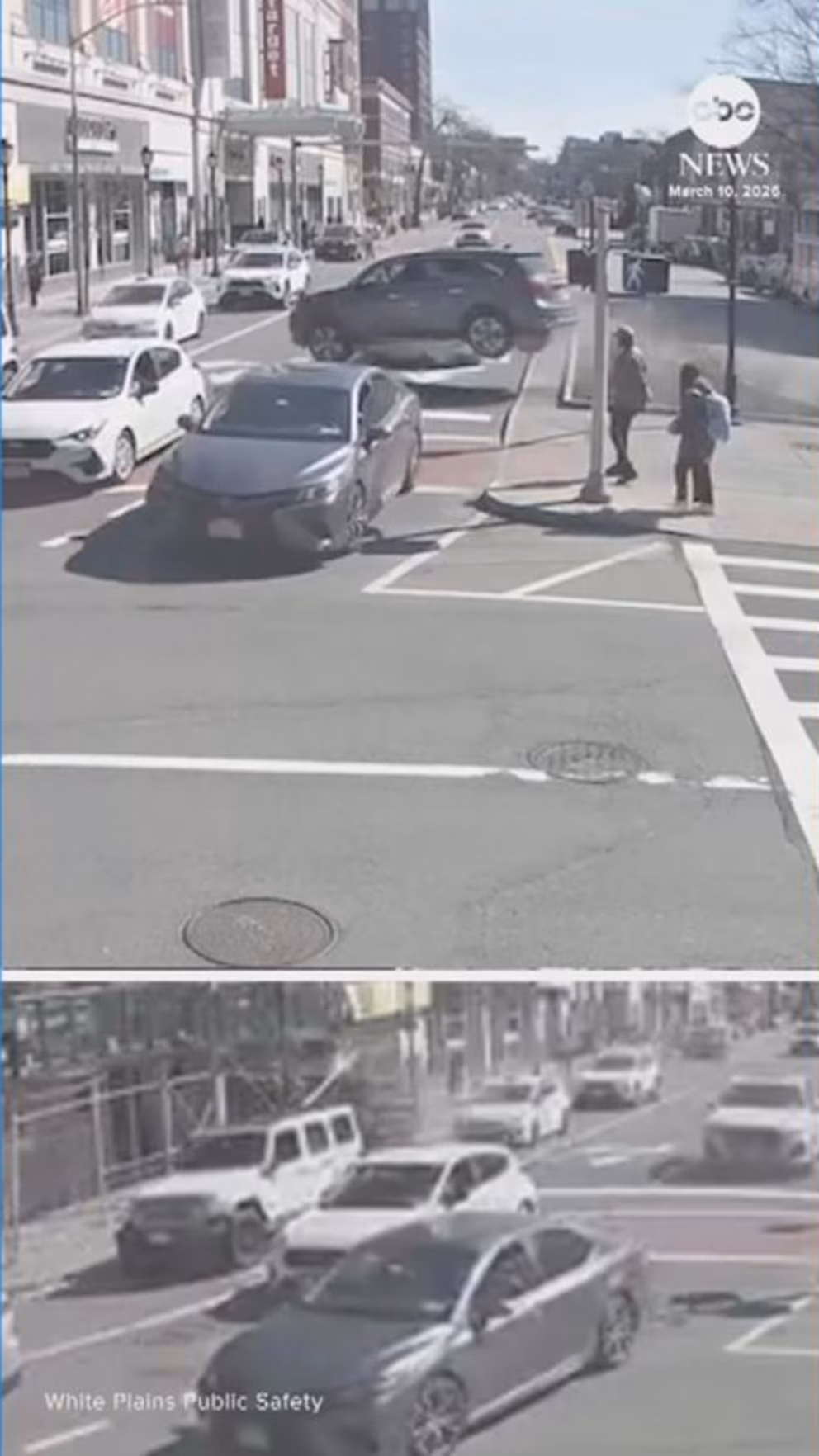 An 80-year-old driver was hospitalized after their out-of-control SUV went airborne in White Plains, New York.
