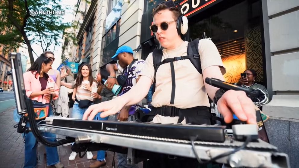 ABC News’ Danny New talks to a young New Yorker who’s gaining fame for bringing his tunes to the streets and inviting bystanders to jam with him.
